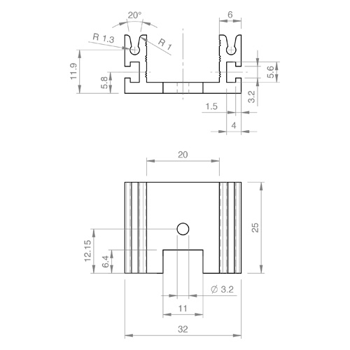 06Dec Code: T44 Width: 32 mm Height: 16 mm Rth (°C/W) naturale: 13 Weight: 0,49 Kg/m Rth (*C/W) = 13 per L = 25 mm